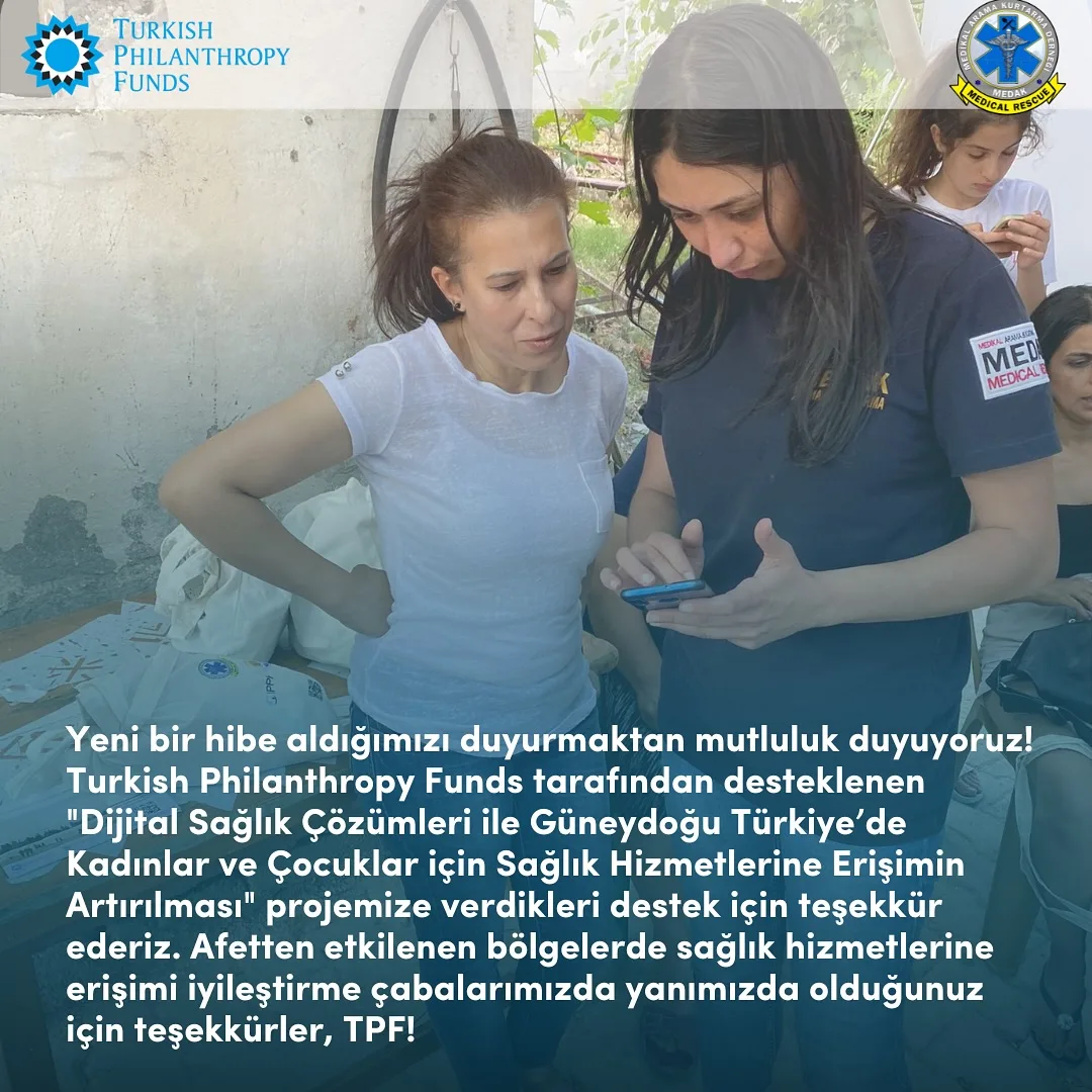 MEDAK’ın “Kadınlar ve Çocuklar için Sağlık Hizmetlerine Erişimin Artırılması” projesine destek veren Turkish Philanthropy Funds’a teşekkür ederiz. Ortaklığınız, ihtiyacı olan bölgelerde etkili çözümler sunmamızı sağlıyor.