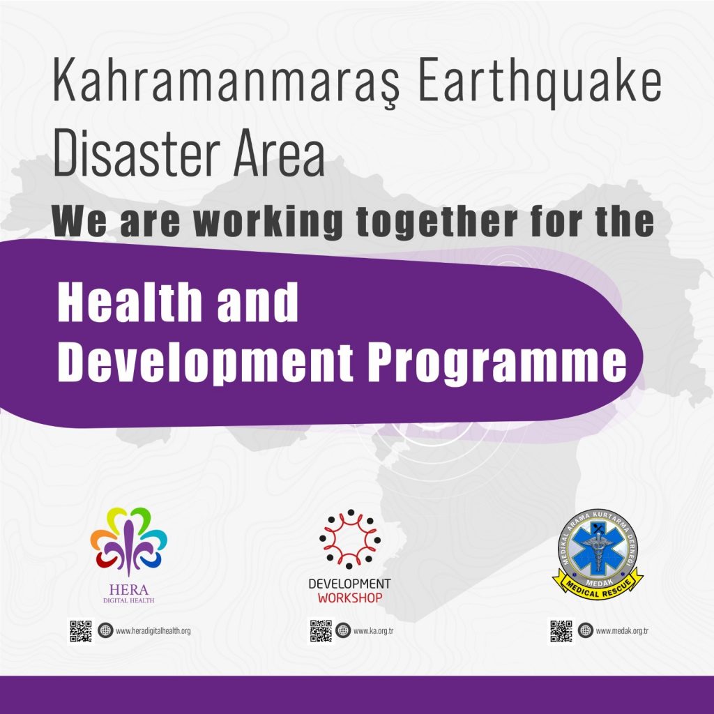 Since the first day of the earthquake, The Development Workshop, MEDAK, and HERA have started field studies within the scope of cooperation focused on health and development to cooperate with different institutions and organizations, conduct short, medium, and long-term studies and develop projects on humanitarian aid, education, social and economic development, access to health services, and psycho-social support in the provinces and districts affected by the earthquake.