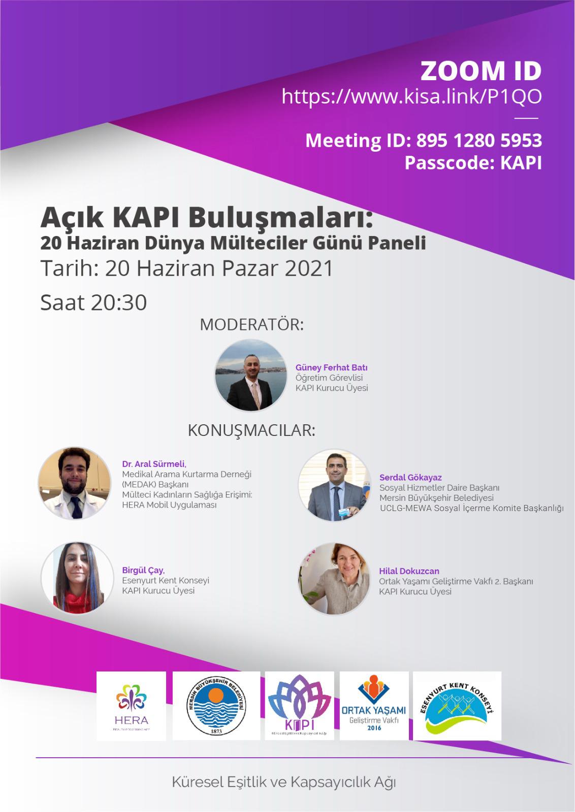 Our topic for June at Open Door (Açık KAPI) Meetings is “migration” You are invited to the "WORLD REFUGEES DAY" panel on June 20th! Date: 20 June 2021 Time: 20:30 Zoom Meeting ID: 895 1280 5953 Passcode: KAPI Zoom Link: https://us02web.zoom.us/j/89512805953?pwd=a1htaWRoK203TzMwUVE2WVJGaGtydz09 Moderator: Güney Ferhat Batı, Lecturer & Founding Member of KAPI Speakers: Serdal Gökayaz, Head of Social Services Department, Mersin Metropolitan Municipality Dr. Aral Sürmeli,…