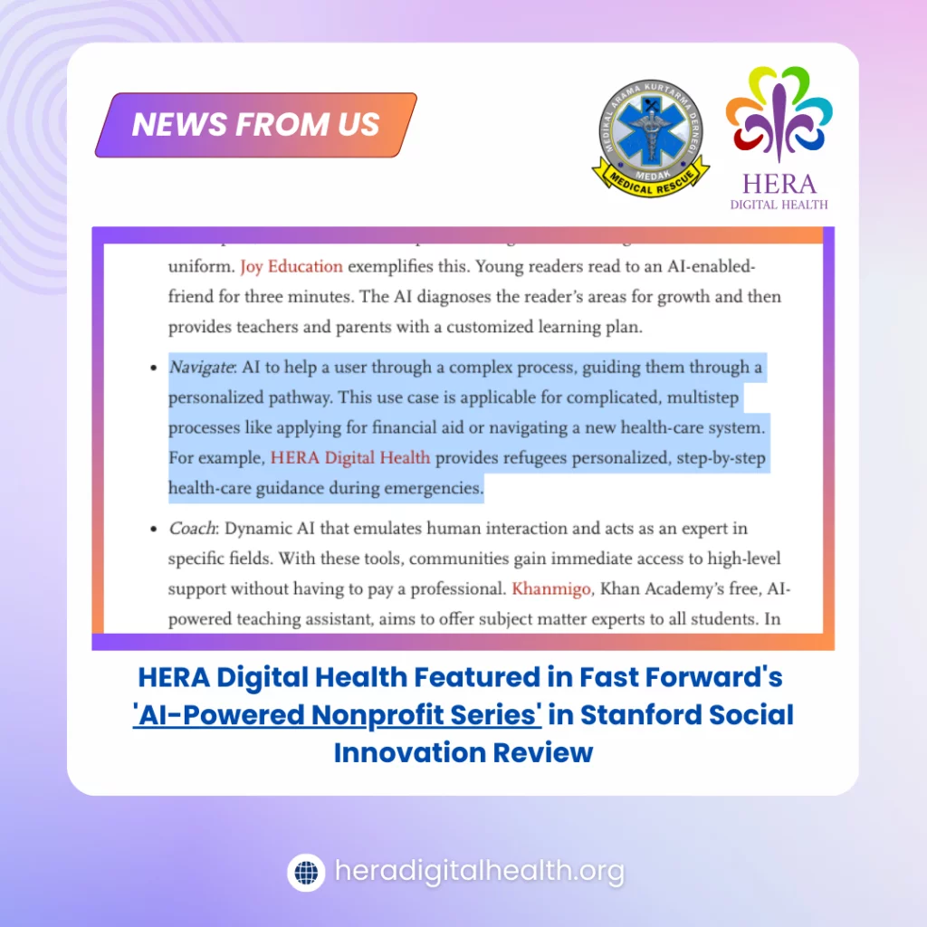📢 HERA Digital Health olarak, Fast Forward’un prestijli Stanford Social Innovation Review’da başlattığı “AI-Powered Nonprofit Series” dizisinin ilk makalesinde yer almaktan büyük onur duyuyoruz! 🎉