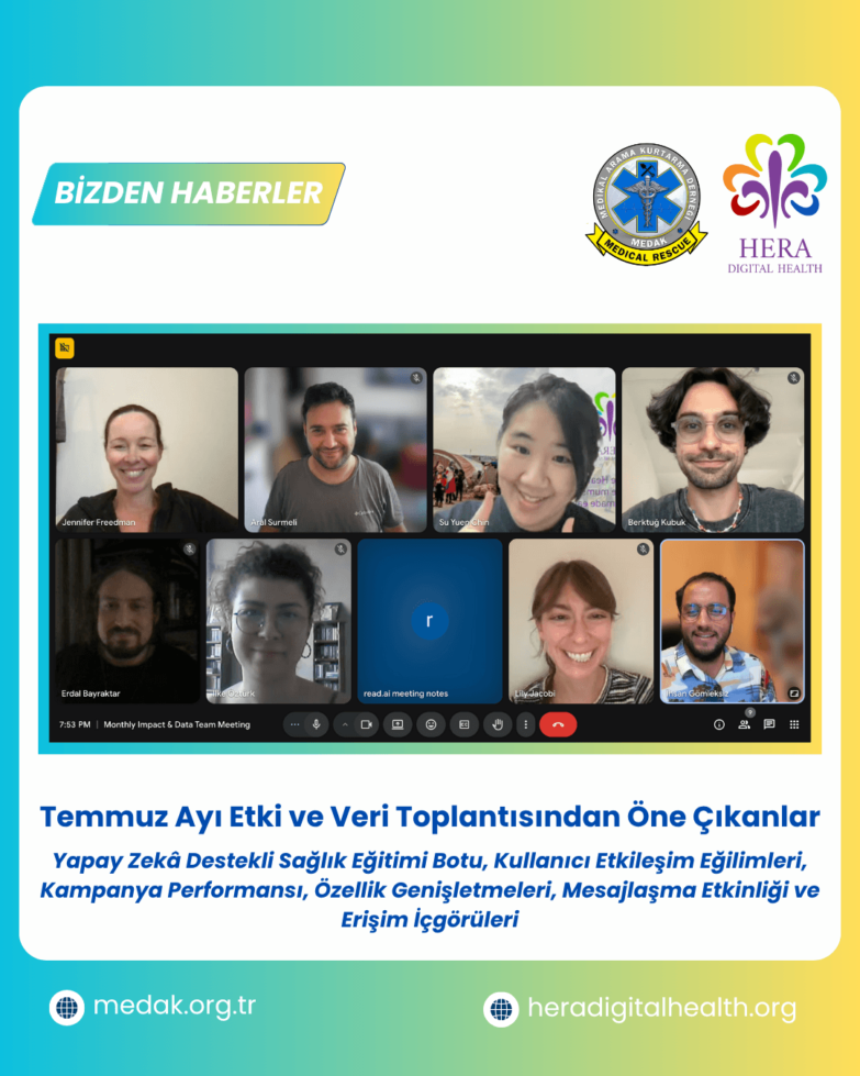 Temmuz ayındaki Etki ve Veri Toplantımızda, kullanıcı davranışları, kampanya performansları ve yapay zekâ tabanlı yeni çözümler üzerine odaklandık. Toplantının öne çıkan konularından biri, WhatsApp üzerinden hizmet veren Yapay Zekâ Sağlık Eğitimi Botu oldu.